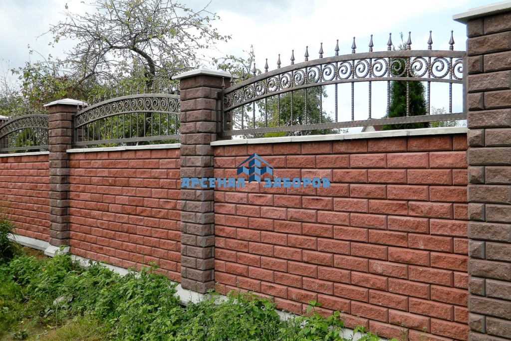 Кирпичный забор с ковкой 100 метров